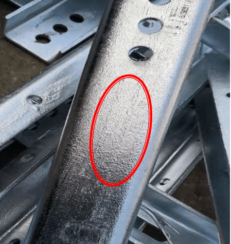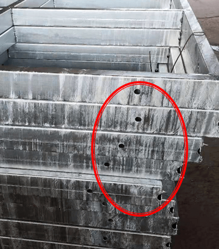 3.起吊速度過快,造成上層工件的余鋅流到下一層的表面。